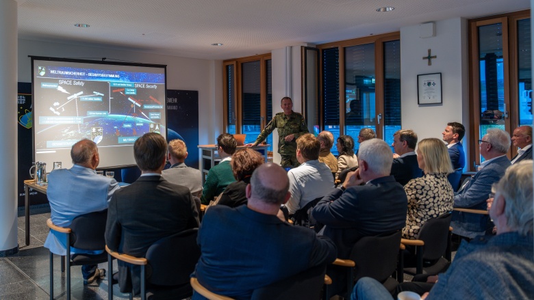 Die AG Innovationstransfer unter der Leitung von Prof. Dr. Klemens Störtkuhl hat sich intensiv mit diesem Thema auseinandergesetzt und das Weltraumkommando in Uedem besucht. Generalmajor Michael Traut erläuterte den rund 30 Teilnehmern, welche Chancen und Risiken bereits heute im Weltraum bestehen. So sind Satellitenverfolgungen und das Abhören von Satelliten durch andere Satelliten längst Alltag. In einem speziell dafür vorgesehenen Zeitfenster konnten die Gäste sogar das Kontrollzentrum der deutschen Weltraumüberwachung live erleben.