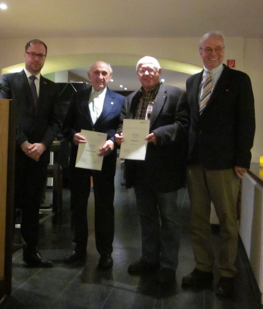 Ganz besonders freute sich Fleck über die Anwesenheit einer Delegation des Verbands Türkischer Unternehmer Rhein-Neckar TID. Die Beziehungen zwischen MIT und TID seien durch intensiven und guten Austausch in stets guter Atmosphäre freundschaftlich gewachsen. Zahlreiche Besuche bei befreundeten MIT-Gliederungen und CDU-Verbänden zur Förderung der Kommunikation untereinander rundeten den Reigen des Veranstaltungsrückblicks ab. Mit Finanzminister a.D. Gerhard Stratthaus war ein profunder Kenner der Wirtschafts- und Finanzpolitik in Bund und Land gekommen, um zu drängenden Fragen der Wirtschaft Stellung zu nehmen. Dem Mittelstand als Rückgrat der Deutschen Wirtschaft sei der heutige Wohlstand in der Bundesrepublik zu verdanken. Er warnte aber zugleich vor den immer schwieriger werdenden Wettbewerbsbedingungen im globalisierten Markt und den Schwierigkeiten, die auf den deutschen Markt dank des „Brexit“-Referendums zukommen werden. In guter Tradition zeichnete der Kreisvorsitzende Alexander Fleck anschließend die Mitglieder Wolfgang Schollmeier und Wolfgang Ziaja für langjährige aktive Mitgliedschaft mit der silbernen Ehrennadel der MIT aus. „Ich wünsche, dass wir alle trotz aller Widrigkeiten mit Dankbarkeit auf das vergangene Jahr zurückblicken und optimistisch ins neue Jahr gehen können.“ Mit diesem Wunsch beendete Fleck das MIT-Jahr in Mannheim und entließ die Anwesenden in die Adventszeit.